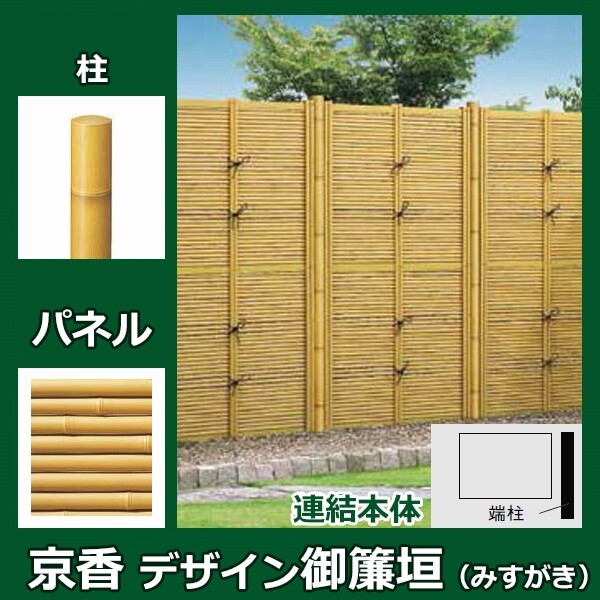 リクシル 竹垣フェンス 京香 デザイン御簾垣 1型 ユニット型 間仕切りタイプ 両面仕様セット 連結本体 柱:木調 角柱 W-10 T-15 真竹