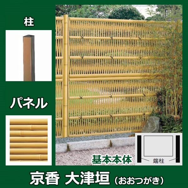 リクシル 竹垣フェンス 京香 大津垣 ユニット型 間仕切りタイプ 両面仕様セット 基本本体 柱:ブロンズ 角柱 W-20 T-9