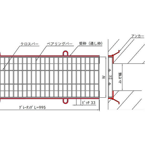 個人宅・現場配送不可 法人様限定商品 法山本店 側溝用グレーチング(普及型) HGB用受枠 黒色塗装(L=1000mm) 受枠寸法31×60mm HGB-350-25受枠