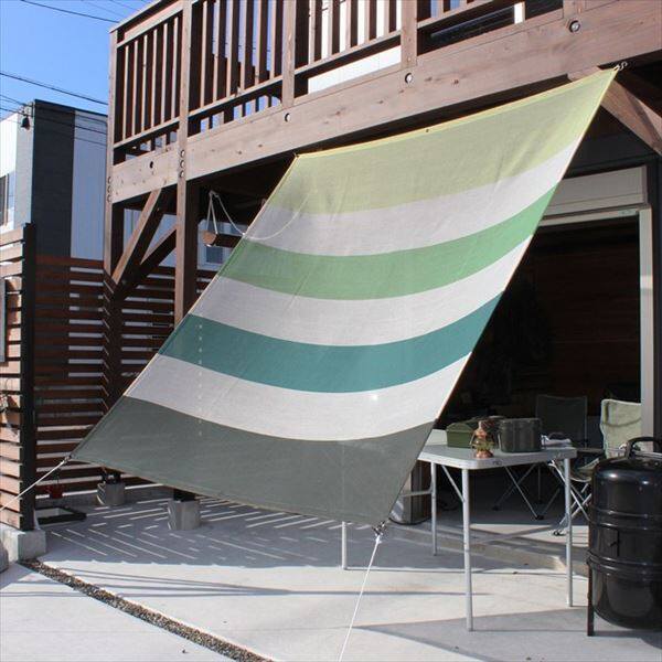 イチオリシェード 3ボーダー 『屋外用日よけ 透過性と通気性へのこだわり 日本製 シェード』 500429 マウントグリーン
