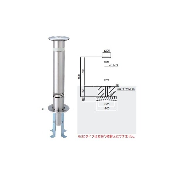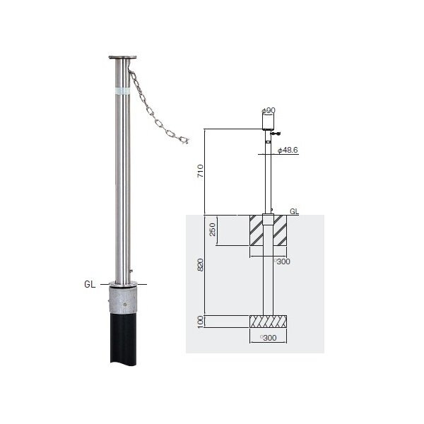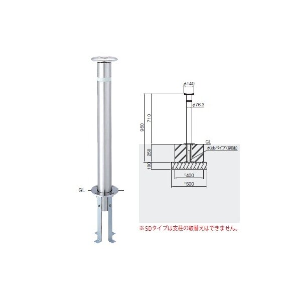 個人宅配送不可 帝金 S54A-C バリカーピラー型 スタンダード ステンレスタイプ 直径101.6mm クサリ内蔵型 固定式