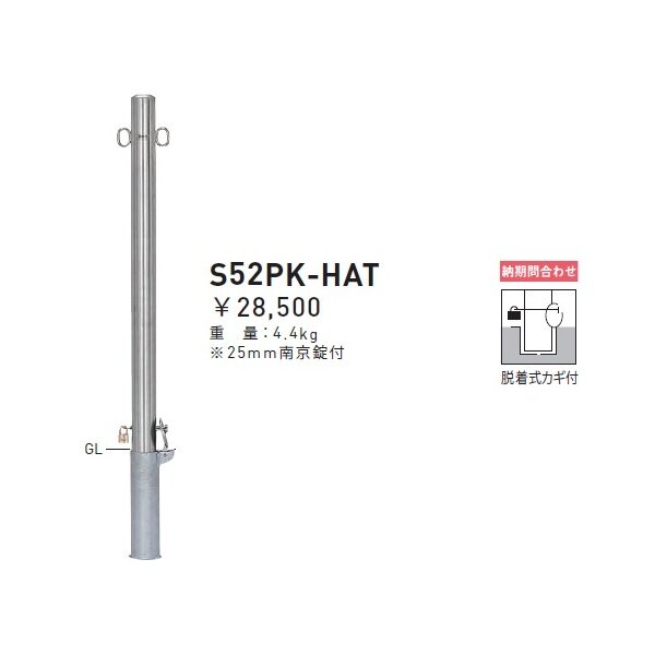 個人宅配送不可 帝金 S52PK-HAT のぼり用ポール のぼり設置タイプ 直径60.5mm 脱着式カギ付