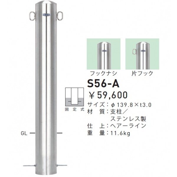 個人宅配送不可 帝金 S56-A バリカーピラー型 スタンダード ステンレスタイプ 直径139.8mm 固定式
