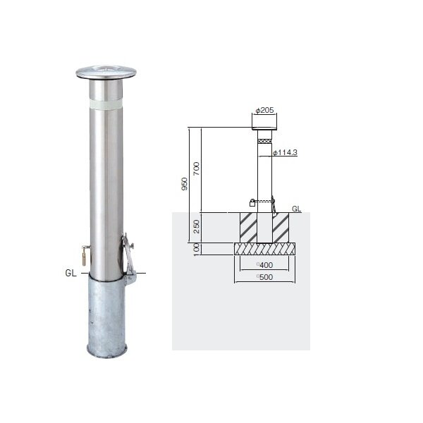 個人宅配送不可 帝金 S54PK-CT バリカーピラー型 スタンダード ステンレスタイプ 直径101.6mm 端部用 脱着式カギ付