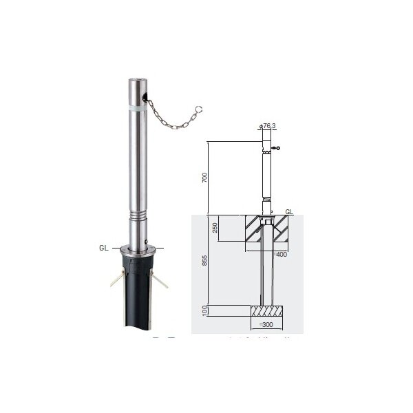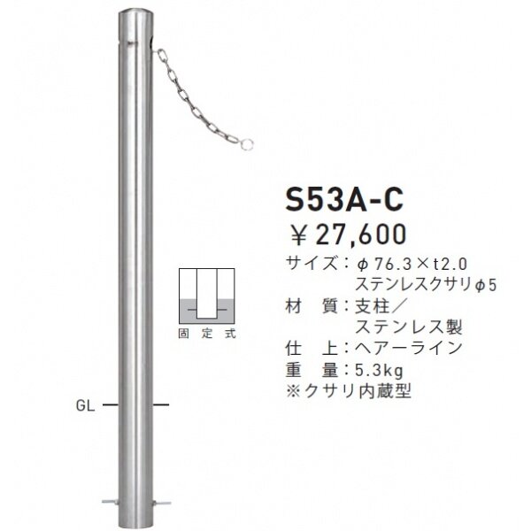 個人宅配送不可 帝金 S53A-C バリカーピラー型 スタンダード ステンレスタイプ 直径76.3mm クサリ内蔵型 固定式