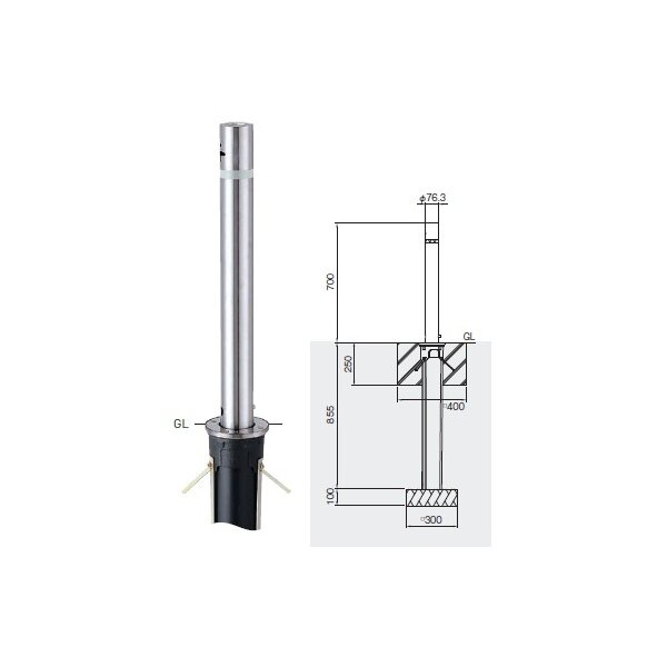 個人宅配送不可 帝金 S54A-C バリカーピラー型 スタンダード ステンレスタイプ 直径101.6mm クサリ内蔵型 固定式