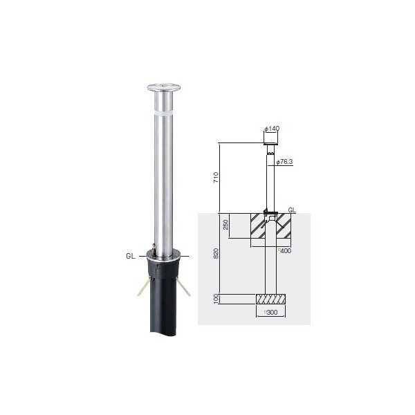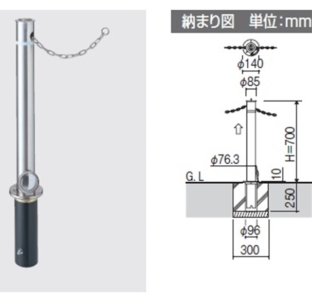 リクシル スペースガード(車止め) LNG43 S76型 埋込式 キー付き クサリ内蔵受