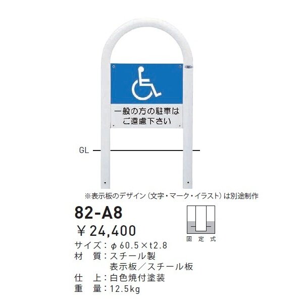 個人宅配送不可 帝金 82-A8 バリカー横型 サインタイプ W500×H850 直径60.5mm 固定式