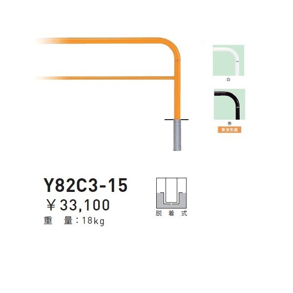 個人宅配送不可 帝金 Y82C3-30 バリカー横型 スタンダード スチールタイプ W3000×H800 直径60.5mm 脱着式