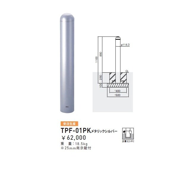 個人宅配送不可 帝金 TPF-01PK バリカーピラー型 ボラード アルミキャスト+スチールタイプ 直径114.3mm 脱着式カギ付 メタリックシルバー