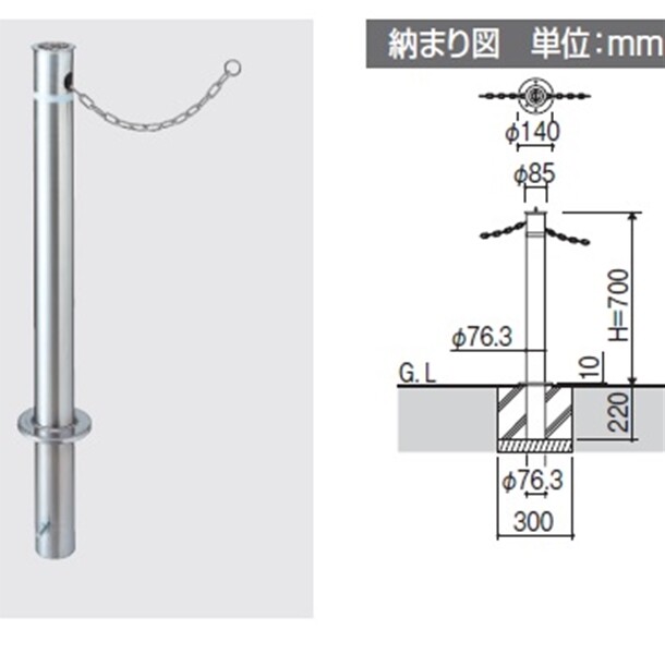 三協アルミ ビポールBP N-76KN φ75mm 中間柱用 固定式 チェーン内蔵型