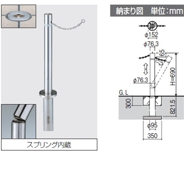 三協アルミ ビポール BNSB-76UDN φ75mm 中間柱用 上下式スプリング内蔵 チェーン内蔵型