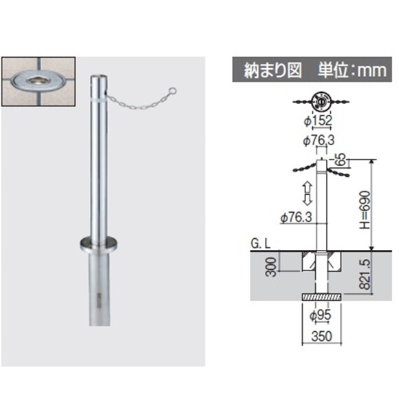 三協アルミ ビポール BNB-76UD-EN φ75mm 端部柱用 上下式 チェーン内蔵型