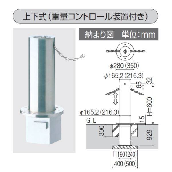 三協アルミ ビポール BN-165UD φ165mm 上下式 チェーン内蔵型 交換ポール(補修用)*受注生産品