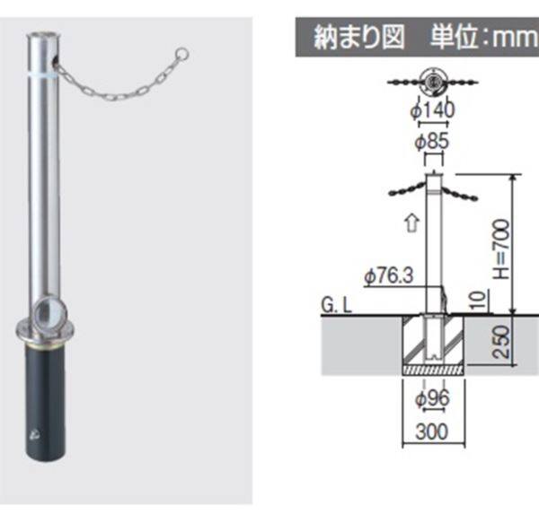 三協アルミ ビポールBP N-60T-EXN φ60mm 端部柱用 取り外し式 チェーン内蔵型 交換ポール(補修用 *受注生産品