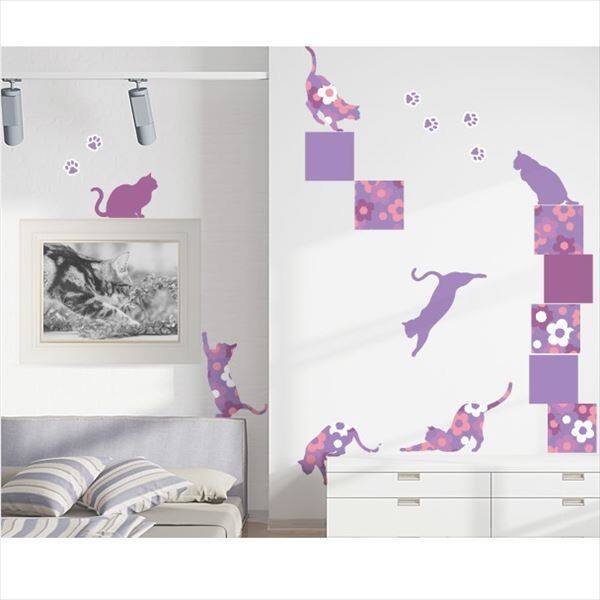東京ステッカー 高級ウォールステッカー 動物 フローラル・キャッツ Sサイズ *TS0021-BS パープル 『おしゃれ かわいい』 『壁 シール』