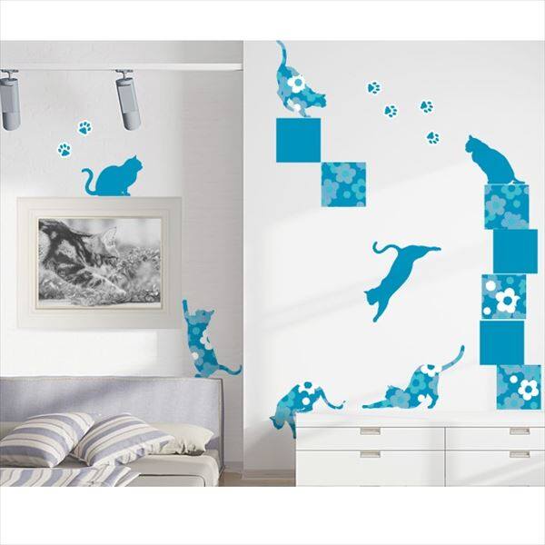 東京ステッカー 高級ウォールステッカー 動物 フローラル・キャッツ Mサイズ *TS0021-DM ブルー 『おしゃれ かわいい』 『壁 シール』