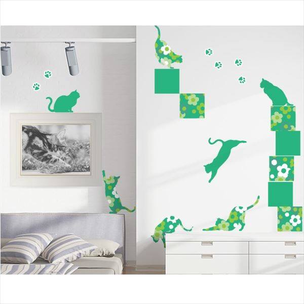 東京ステッカー 高級ウォールステッカー 動物 フローラル・キャッツ Lサイズ *TS0021-FL グリーン 『おしゃれ かわいい』 『壁 シール』