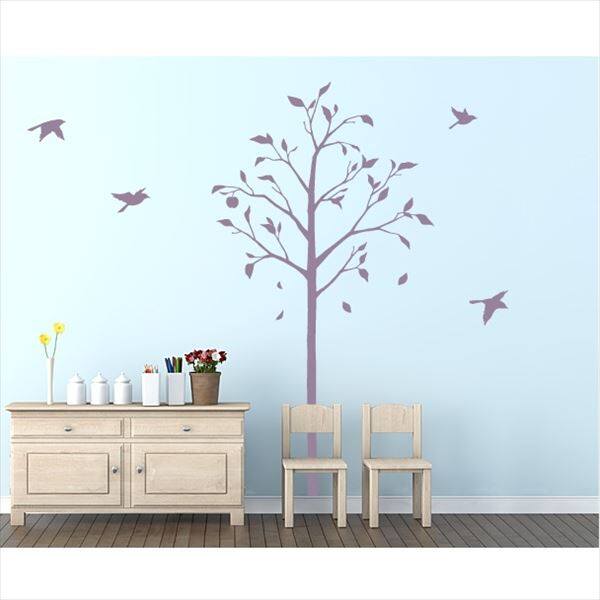 東京ステッカー 高級ウォールステッカー 植物 林檎の木と小鳥 Sサイズ *TS0051-ES パープル 『おしゃれ かわいい』 『壁 シール』