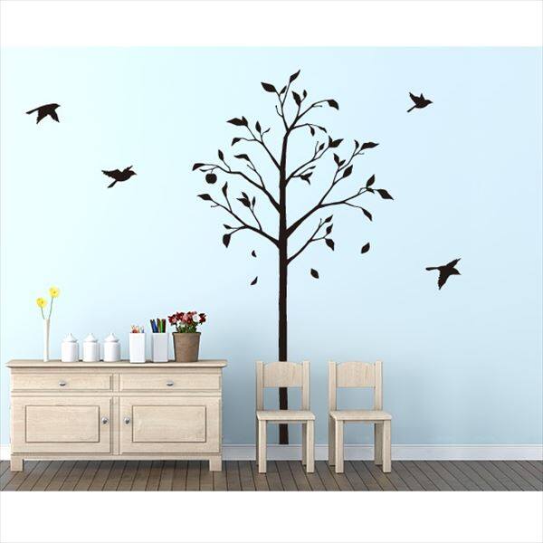 東京ステッカー 高級ウォールステッカー 植物 林檎の木と小鳥 Lサイズ *TS0051-AL ブラック 『おしゃれ かわいい』 『壁 シール』