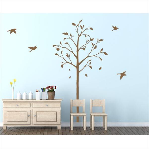東京ステッカー 高級ウォールステッカー 植物 林檎の木と小鳥 Lサイズ *TS0051-CL ブラウン 『おしゃれ かわいい』 『壁 シール』