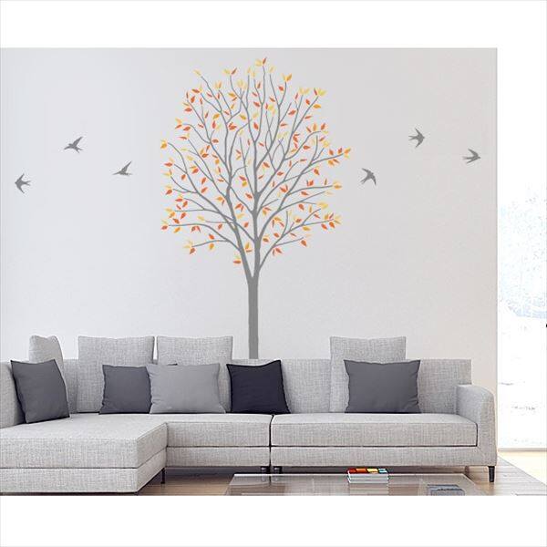 東京ステッカー 高級ウォールステッカー 植物 木とツバメ Lサイズ *TS0027-DL オレンジ 『おしゃれ かわいい』 『壁 シール』