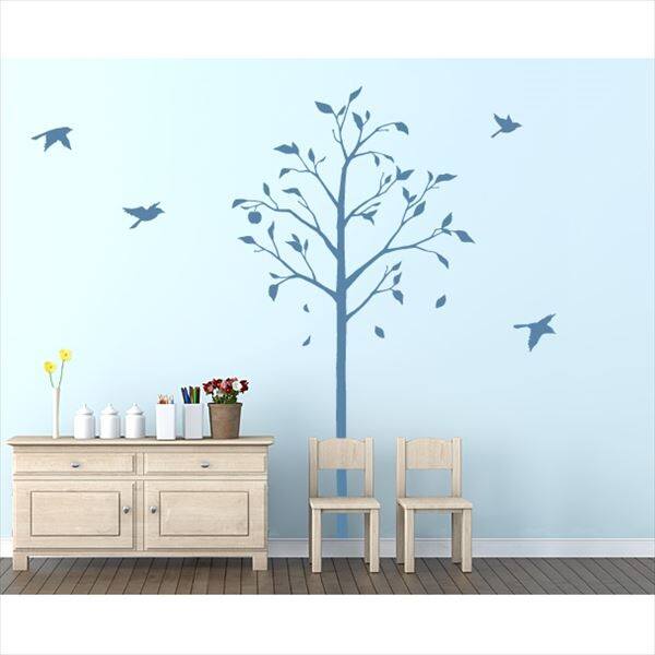 東京ステッカー 高級ウォールステッカー 植物 木とツバメ Mサイズ *TS0027-BM ブルー 『おしゃれ かわいい』 『壁 シール』
