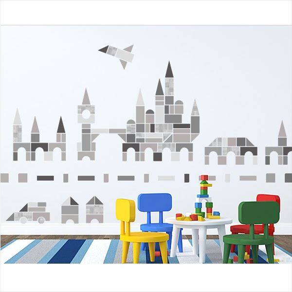 東京ステッカー 高級ウォールステッカー キッズ 積み木遊び Lサイズ *TS0029-FL グレー 『おしゃれ かわいい』 『壁 シール』