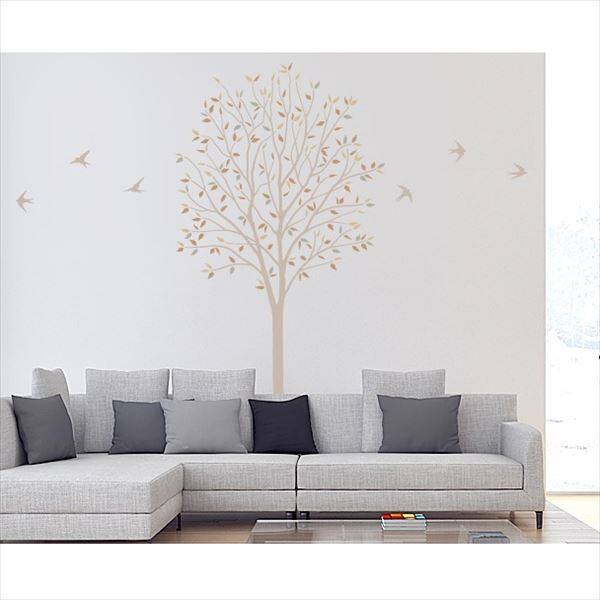 東京ステッカー 高級ウォールステッカー 植物 木とツバメ Mサイズ *TS0027-EM ベージュ 『おしゃれ かわいい』 『壁 シール』