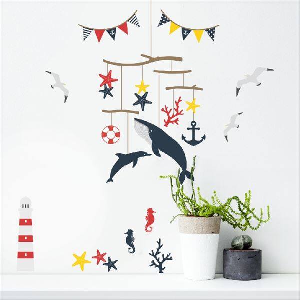 東京ステッカー 繊細デザイン・ウォールステッカー(転写タイプ) 「海の楽しいモビール」 SSサイズ 3枚セット TS-7014-ASS 『おしゃれ かわいい』 『壁 シール』
