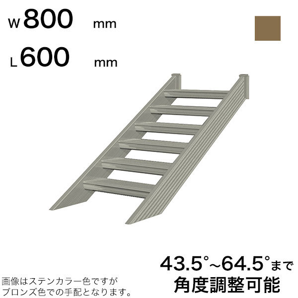 森田アルミ工業 STAIRS ステアーズ 階段本体 階段長さ L600mm 階段幅 W800mm ステップ枚数 1枚 角度調節範囲 43.5°~64.5° 踏板の耐荷重 150kg SB0608T0 ブロンズ