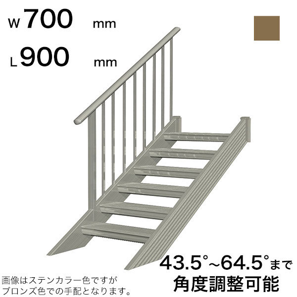 森田アルミ工業 STAIRS ステアーズ 片手摺付(立格子)階段長さ L900mm 階段幅 W700mm 手摺笠木長さT 700mm パネル長さP 240mm ステップ枚数 2枚 角度調節範囲 43.5°~64.5° 踏板の耐荷重 150kg SB0907T1 ブロンズ