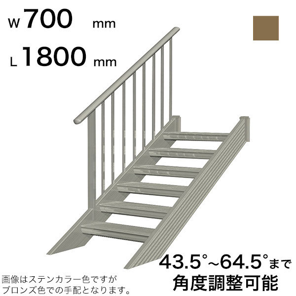 森田アルミ工業 STAIRS ステアーズ 片手摺付(立格子)階段長さ L1800mm 階段幅 W700mm 手摺笠木長さT 1600mm パネル長さP 1190mm ステップ枚数 5枚 角度調節範囲 43.5°~64.5° 踏板の耐荷重 150kg SB1807T1 ブロンズ