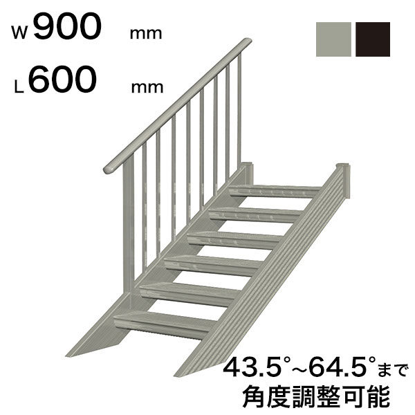 森田アルミ工業 STAIRS ステアーズ 片手摺付(立格子)階段長さ L600mm 階段幅 W900mm 手摺笠木長さT 400mm パネル長さP 240mm ステップ枚数 1枚 角度調節範囲 43.5°~64.5° 踏板の耐荷重 150kg S□0609T1