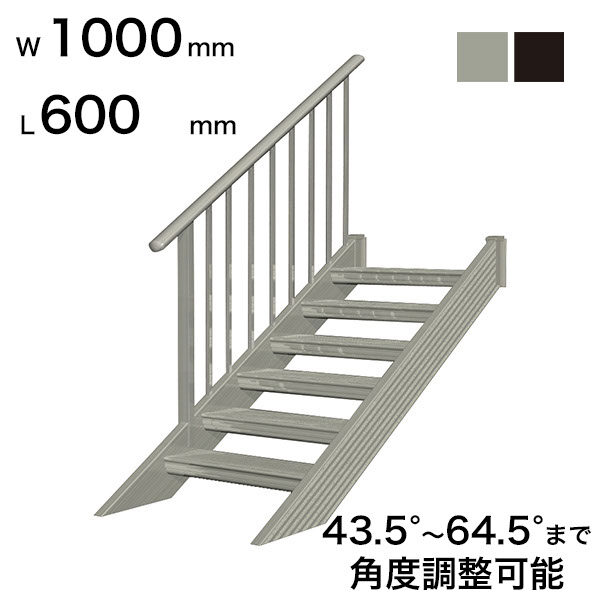 森田アルミ工業 STAIRS ステアーズ 片手摺付(立格子)階段長さ L600mm 階段幅 W1000mm 手摺笠木長さT 400mm パネル長さP 240mm ステップ枚数 1枚 角度調節範囲 43.5°~64.5° 踏板の耐荷重 150kg S□0610T1