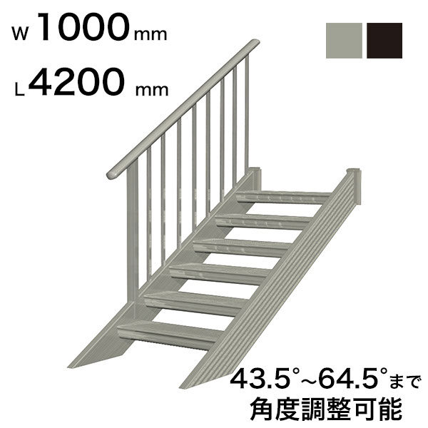 森田アルミ工業 STAIRS ステアーズ 片手摺付(立格子)階段長さ L4200mm 階段幅 W1000mm 手摺笠木長さT 4000mm パネル長さP 3470mm ステップ枚数 13枚 角度調節範囲 43.5°~64.5° 踏板の耐荷重 150kg S□4210T1