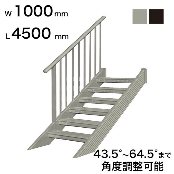 森田アルミ工業 STAIRS ステアーズ 片手摺付(立格子)階段長さ L4500mm 階段幅 W1000mm 手摺笠木長さT 4300mm パネル長さP 上1380mm、下1950mm ステップ枚数 14枚 角度調節範囲 43.5°~64.5° 踏板の耐荷重 150kg S□4510T1