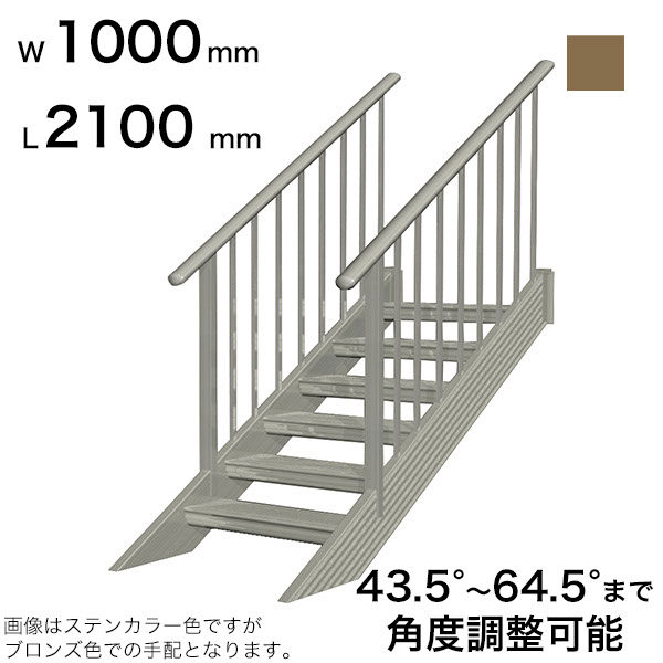 森田アルミ工業 STAIRS ステアーズ 両手摺付(立格子)階段長さ L2100mm 階段幅 W1000mm 手摺笠木長さT 1900mm パネル長さP 1380mm ステップ枚数 6枚 角度調節範囲 43.5°~64.5° 踏板の耐荷重 150kg SB2110T2 ブロンズ