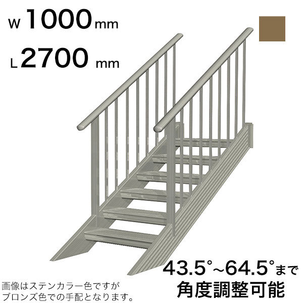 森田アルミ工業 STAIRS ステアーズ 両手摺付(立格子)階段長さ L2700mm 階段幅 W1000mm 手摺笠木長さT 2500mm パネル長さP 1950mm ステップ枚数 8枚 角度調節範囲 43.5°~64.5° 踏板の耐荷重 150kg SB2710T2 ブロンズ