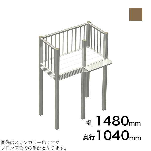 森田アルミ工業 STAIRS ステアーズ Cタイプ踊場(立格子) 奥行1040mm 幅1480mm 柱長さ 75角柱L3300 5本含む(現場にて取付け高さに柱の切断が必要) ブロンズ