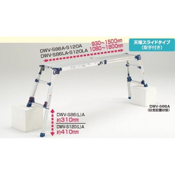 ピカコーポレイション 四脚アジャス式足場台天場スライドタイプ(取手付き) DWV-S86LA