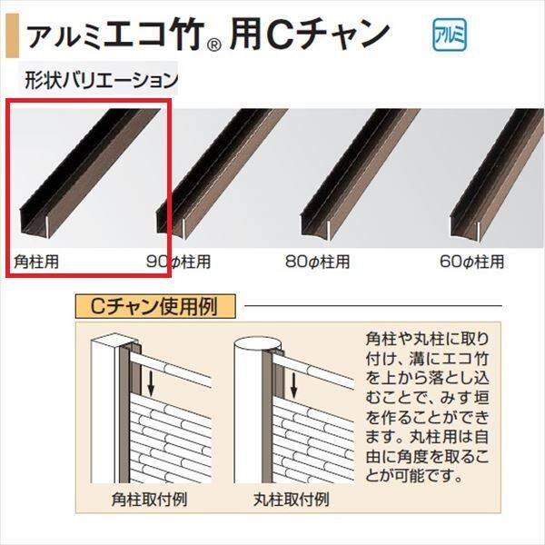 タカショー 人工竹垣材料 アルミ角柱用Cチャン エコ竹 22径用 L3700長尺 『ガーデニングDIY部材』 ブロンズ