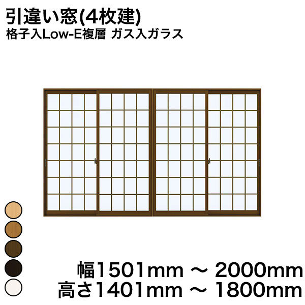 【YKKAP正規ガラス使用】YKK YKKAP マドリモ 内窓 プラマードU 引違い窓(4枚建) 格子入Low-E複層ガラス 透明ガラス 3mm+A12+3mm 幅 1501mm ~ 2000mm 高さ 1801mm ~ 2200mm『 内窓 二重窓 diy 防音 樹脂窓 樹脂サッシ 』