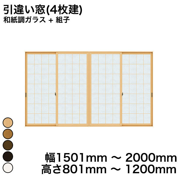 【YKKAP正規ガラス使用】YKK YKKAP マドリモ 内窓 プラマードU 引違い窓(4枚建) 和紙調ガラス + 組子 和紙調ガラス 5mm+横繁吹寄格子 幅 1501mm ~ 2000mm 高さ 801mm ~ 1200mm『 内窓 二重窓 diy 防音 樹脂窓 樹脂サッシ 』