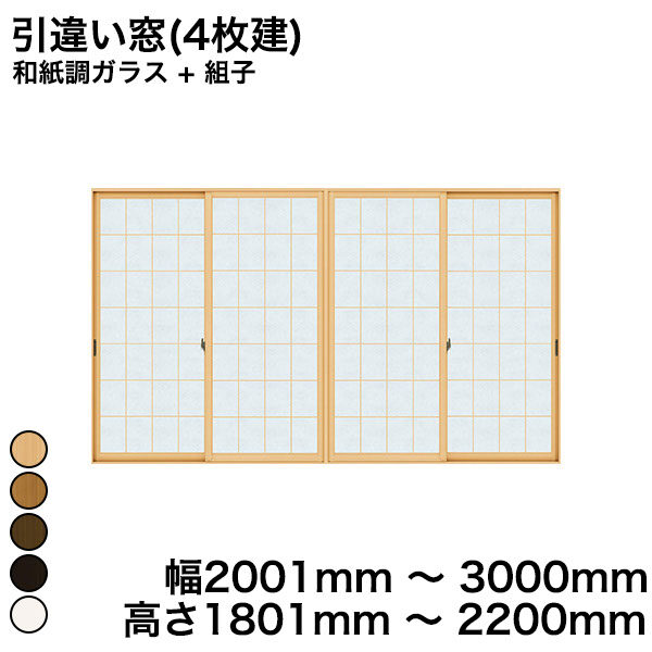 【YKKAP正規ガラス使用】YKK YKKAP マドリモ 内窓 プラマードU 引違い窓(4枚建) 和紙調ガラス + 組子 和紙調ガラス 3mm+荒間格子 幅 2001mm ~ 3000mm 高さ 1801mm ~ 2200mm『 内窓 二重窓 diy 防音 樹脂窓 樹脂サッシ 』