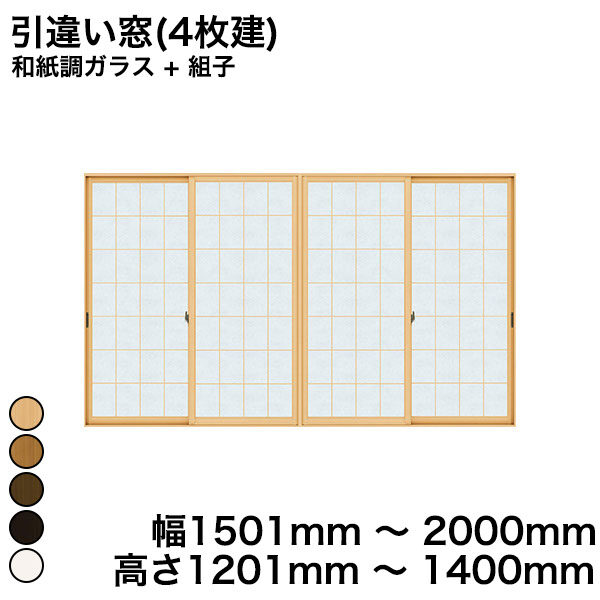 【YKKAP正規ガラス使用】YKK YKKAP マドリモ 内窓 プラマードU 引違い窓(4枚建) 和紙調ガラス + 組子 和紙調ガラス 3mm+荒間格子 幅 1501mm ~ 2000mm 高さ 1201mm ~ 1400mm『 内窓 二重窓 diy 防音 樹脂窓 樹脂サッシ 』
