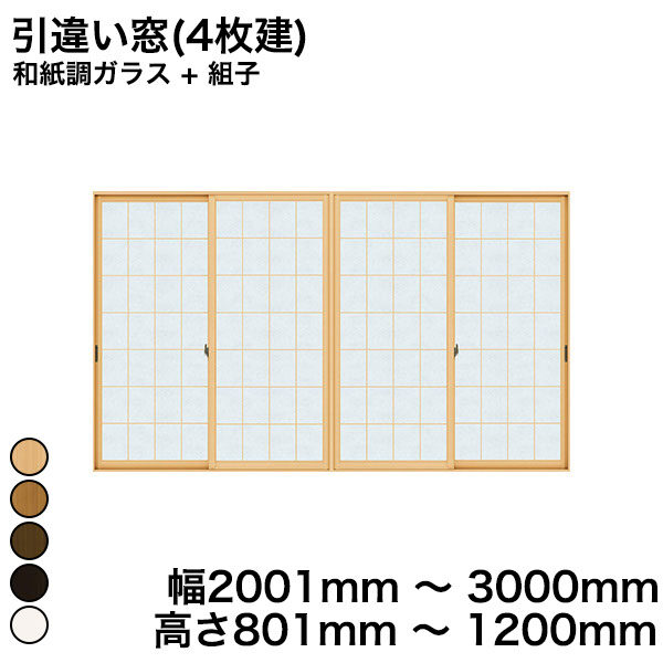 【YKKAP正規ガラス使用】YKK YKKAP マドリモ 内窓 プラマードU 引違い窓(4枚建) 和紙調ガラス + 組子 和紙調ガラス 5mm+荒間格子 幅 3001mm ~ 3740mm 高さ 1801mm ~ 2200mm『 内窓 二重窓 diy 防音 樹脂窓 樹脂サッシ 』