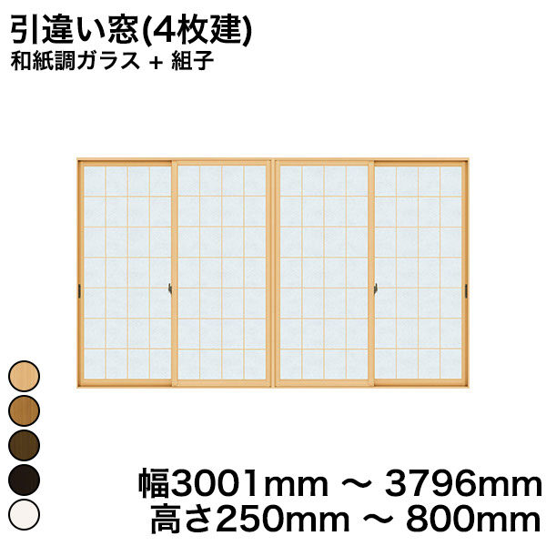 【YKKAP正規ガラス使用】YKK YKKAP マドリモ 内窓 プラマードU 引違い窓(4枚建) 和紙調ガラス + 組子 和紙調ガラス 5mm+荒間格子 幅 3001mm ~ 3740mm 高さ 250mm ~ 800mm『 内窓 二重窓 diy 防音 樹脂窓 樹脂サッシ 』