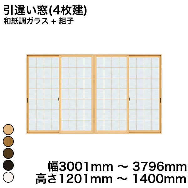 【YKKAP正規ガラス使用】YKK YKKAP マドリモ 内窓 プラマードU 引違い窓(4枚建) 和紙調ガラス + 組子 和紙調ガラス 5mm+荒間格子 幅 3001mm ~ 3740mm 高さ 1201mm ~ 1400mm『 内窓 二重窓 diy 防音 樹脂窓 樹脂サッシ 』