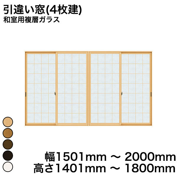 【YKKAP正規ガラス使用】YKK YKKAP マドリモ 内窓 プラマードU 引違い窓(4枚建) 和室用複層ガラス 荒間格子 すり板ガラス 4mm+A11+3mm 幅 1501mm ~ 2000mm 高さ 1401mm ~ 1800mm『 内窓 二重窓 diy 防音 樹脂窓 樹脂サッシ 』